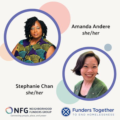 Dear NFG Members, Partners, and Allies, We are writing today with excitement to announce a pivotal moment in the Neighborhood Funders Group’s (NFG) journey: the appointment of Stephanie Chan and Amanda Andere as NFG’s new Co-Presidents. The pair have collaborated for seven years as Chief Strategy Officer and Chief Executive Officer respectively at Funders Together for Housing Justice…