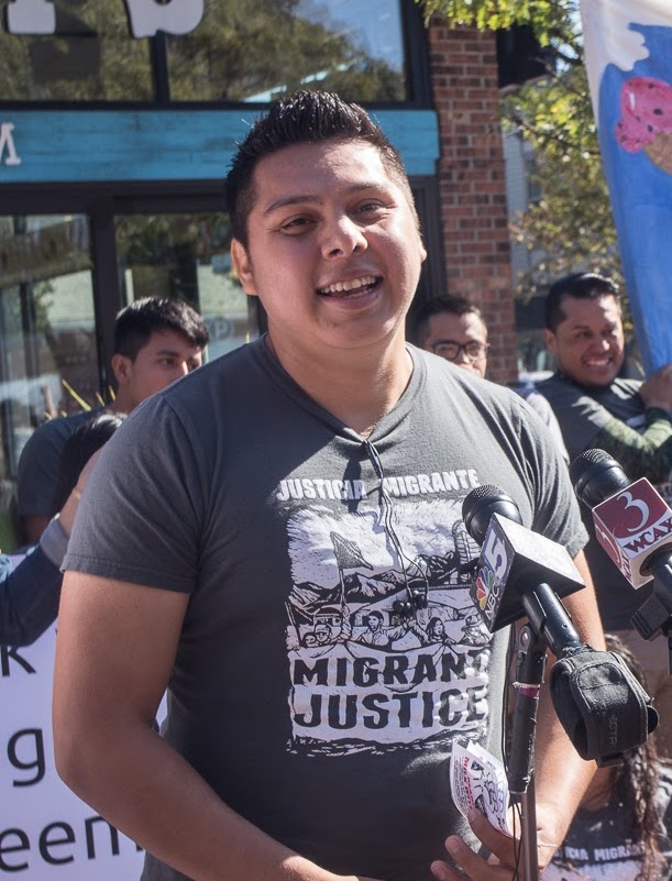Enrique "Kike" Balcazar immigrated to the United States from Tabasco, Mexico when he was 17 years old. He joined his parents on a dairy farm in rural Vermont and worked for years on farms across the state. Enrique joined Migrant Justice and became a leader in the successful campaign to expand access to driver's licenses to undocumented immigrants in Vermont. He became part of the organization's Farmworker Coordinating Committee and is now an organizer and spokesperson. Enrique is one of the principal architects of Milk with Dignity, a worker-led program securing human rights and economic justice in dairy supply chains. In 2017, during a national campaign calling on Ben & Jerry's to join the program, Enrique and fellow organizer Zully Palacios were arrested by ICE agents while leaving the Migrant Justice office. A wave of protests won their release from detention, though Enrique remains in deportation proceedings. Despite the government's persecution, Enrique continued to lead the Milk with Dignity campaign to victory, signing a historic contract with Ben & Jerry's in October, 2017.