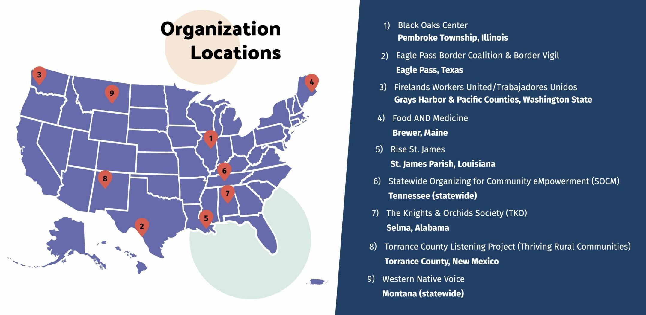 We are incredibly grateful for the nine profiled organizations for sharing their work with us, to Rural Democracy Initiative for their partnership in creating and sharing this resource, and to Karla Flemming for her beautiful design work.