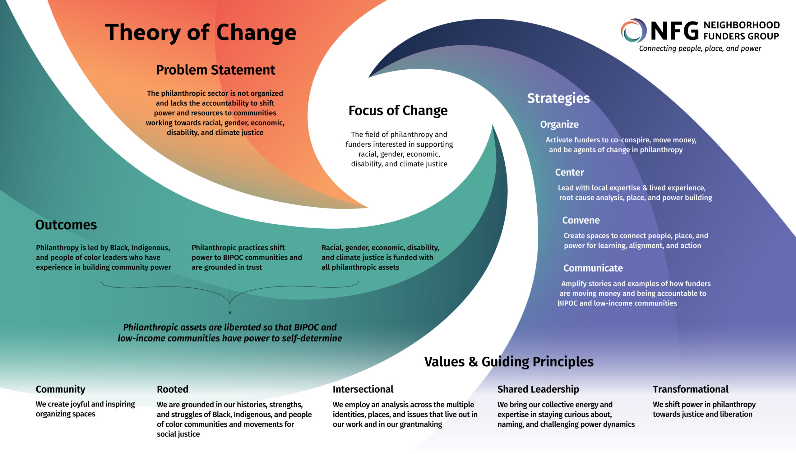 This refreshed theory of change document is a commitment, an aspiration, and a blueprint for how NFG wants to be in our work and in our relationships with our community.